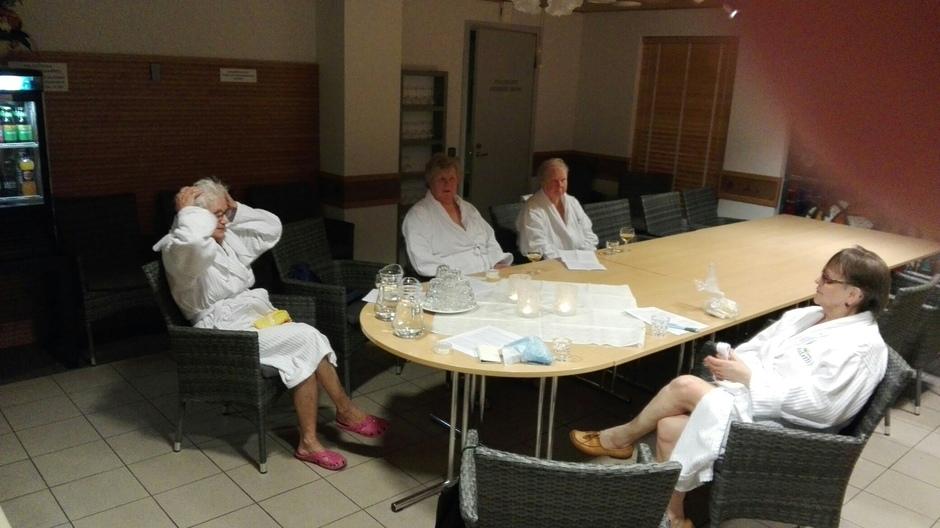 Pitkänpöydän päässä Maija Fest, päätäjäiset 2016