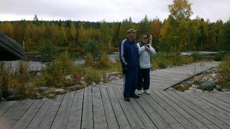 Vikakönkäällä retkellä, Rauha ja Eino pitkospuilla